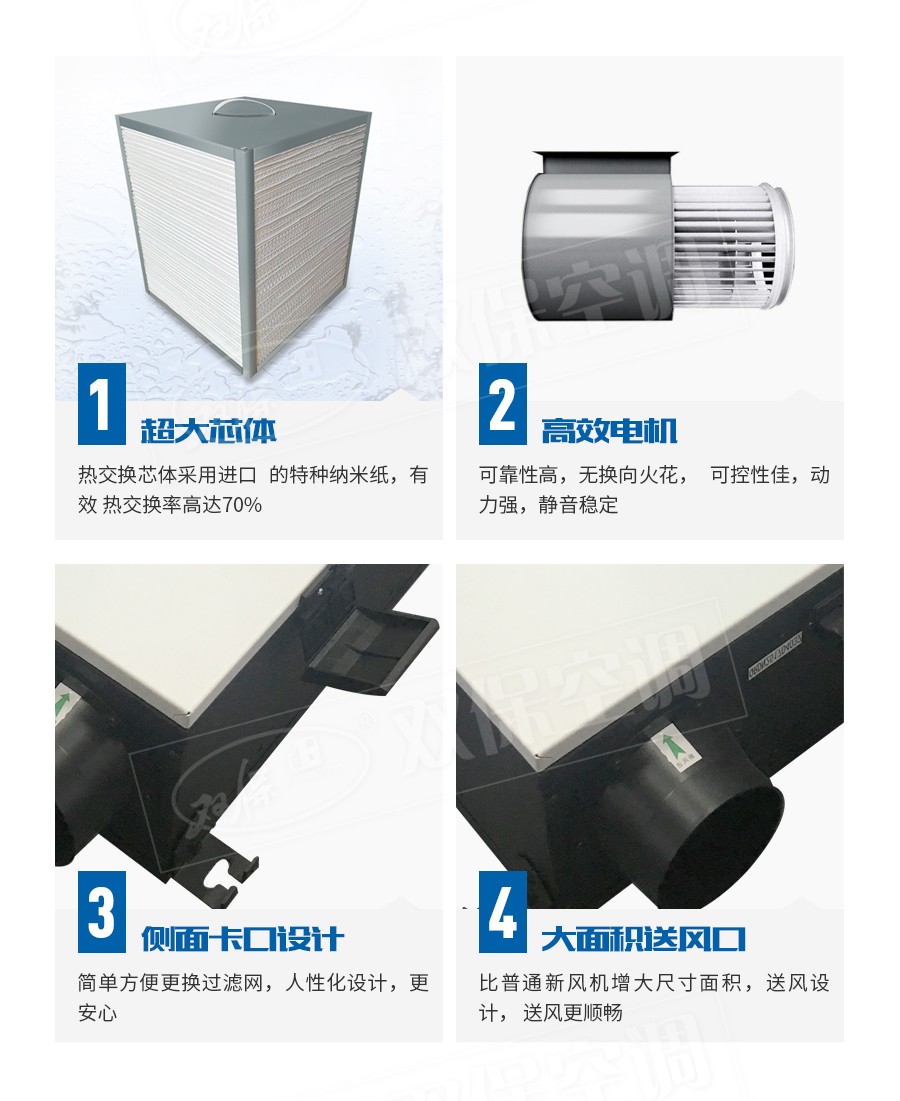 【產品特點】雙向換氣、靜音設計、能量回收、過濾凈化、低費用高效率等